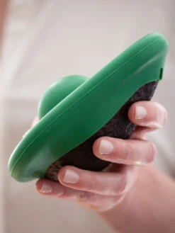 The avocado huggers come in two sizes so you can cover any kind of avocado. And the patented design has reversible pit pocket — push the pocket in or out depending on whether or not you take the pit out or leave it in!